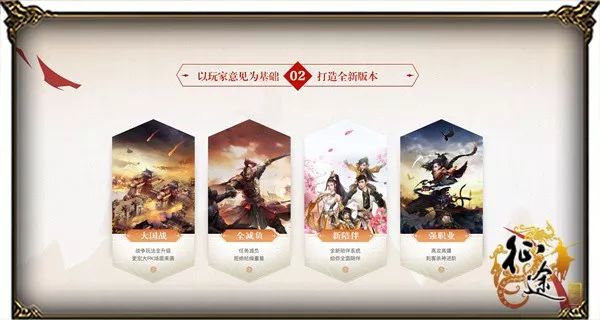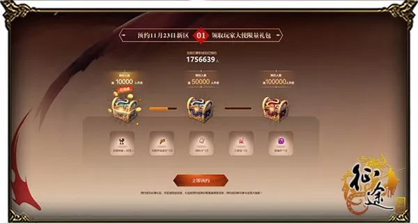 预约玩家达到相应人数可以激活相应的宝箱,获取更奢华的大礼,衣服神器(30天)、无暇升级宝石*1万、材料卡*1万、工资包*1万、灵魂丹*1万等你免费领取!在新区助你成为独霸一方的强者,开启新区披荆斩棘之路! 共创征途资料片 打造全新版本! 2018年《征途》最引人注目的11月新资料片“共创征途”,是以嘉年华及上海玩家见面会时玩家提供的意见为研发基础,精心打造的全新版本,宗旨是“让玩家负担减半,快乐翻倍!” 在专题页面中,可以提前了解11月资料片的四大革新:大国战,战争玩法全升级,更宏大PK场面来袭!全减负,任务减负,拒绝枯燥重复!新陪伴,全新陪伴系统,给你全面陪伴!强职业,高攻高爆刺客杀神进阶……点击每一个版块,即可对新资料片内容进行深入了解。